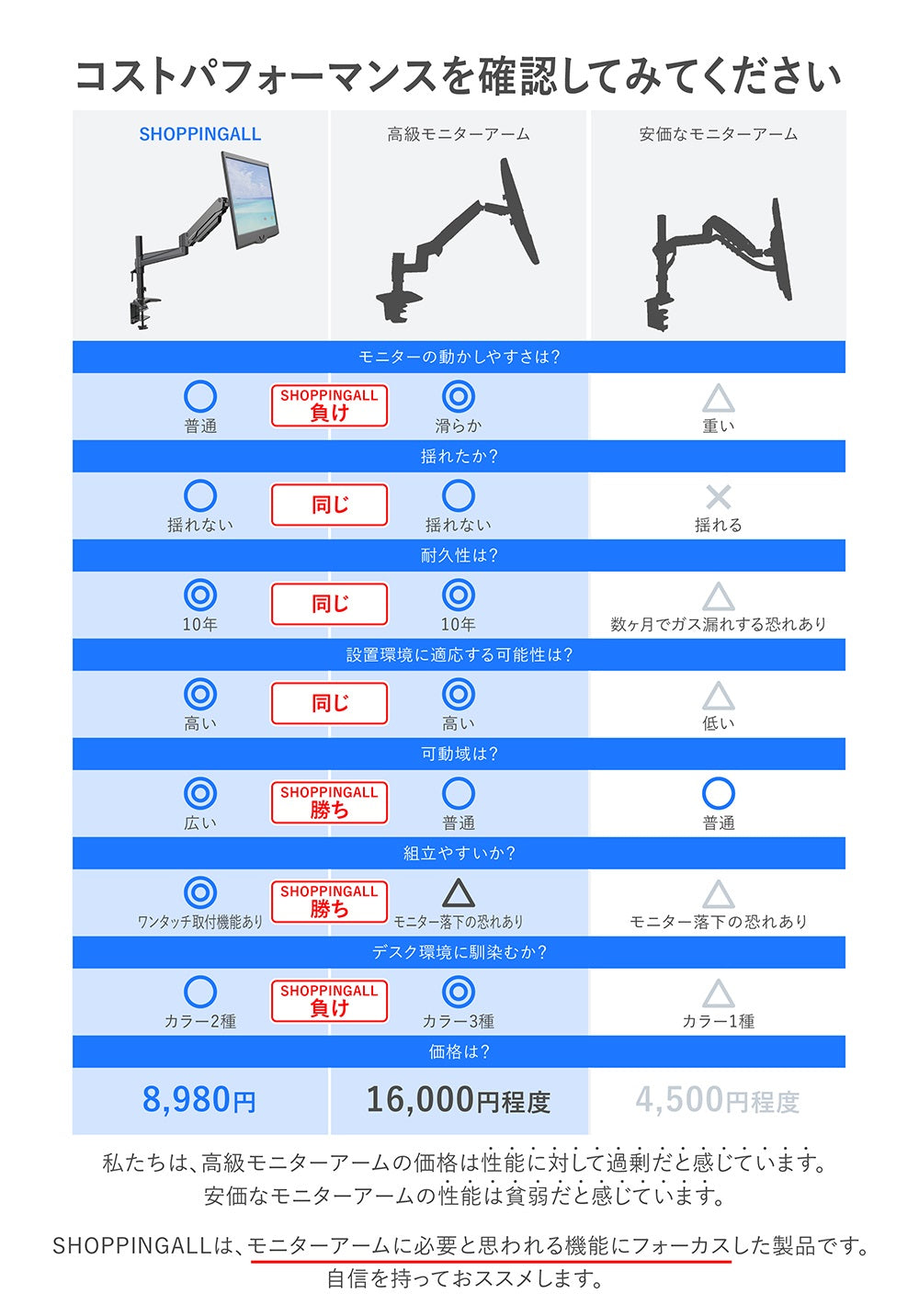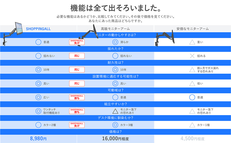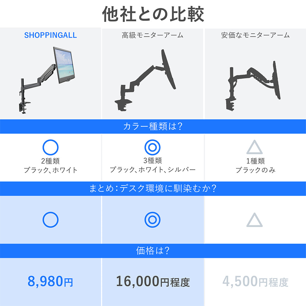 一流メーカーと同じく、デスク環境に応じてカラーを選べます